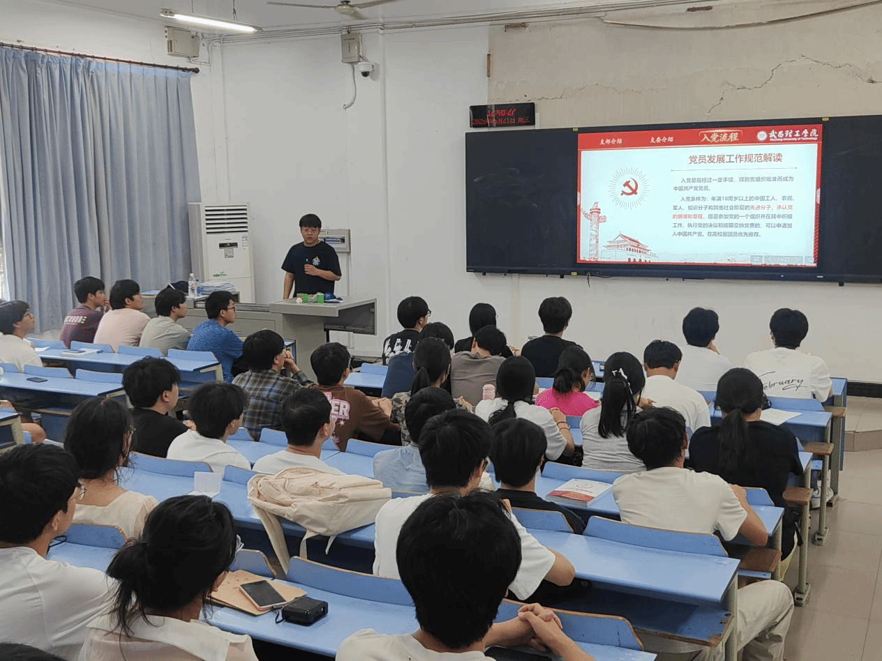 最后会议进行第三项入党流程规范解读。张轩豪同志梳理了党员发展的五大阶段:申请入党,积极分子培养,发展对象确定,预备党员接收,转正考核。张轩豪同志强调“规范引领,确保党员队伍纯洁性”。同时表示支部严格遵循《中国共产党发展党员工作细则》及学校相关要求,体现全面从严治党工作。