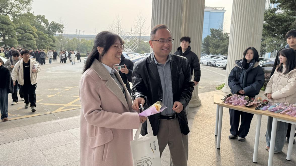天刚微亮,304永利集团党总支书记饶浪,副院长安庆、刘逢刚,院办主任张红舰,团委书记余阳便早早来到学院门口等候,与学生骨干们一同为本次献礼活动做好充分准备。当女教师们陆续走进校园,各位领导面带微笑上前,为每一位女教师亲手献上鲜花与巧克力,同时送上暖心的节日祝福,一句句真挚的问候、一份份精致的礼物,让女教师们在清晨便收获了满满的惊喜与温暖。美丽的鲜花承载着学院对女教师们的深情敬意,那盛放的花瓣如同女教师们在教育事业中绽放的光彩,祝愿她们在忙碌的教学科研之余,能常伴芬芳、悦享时光,留住生活中的美好与诗意;香甜的巧克力则传递着学院对女教师们的贴心关爱,丝滑的口感寓意着生活的甜蜜顺遂,希望她们在辛勤耕耘的日子里,能及时补充能量、呵护身心,在忙碌中也能品味生活的甘甜。
