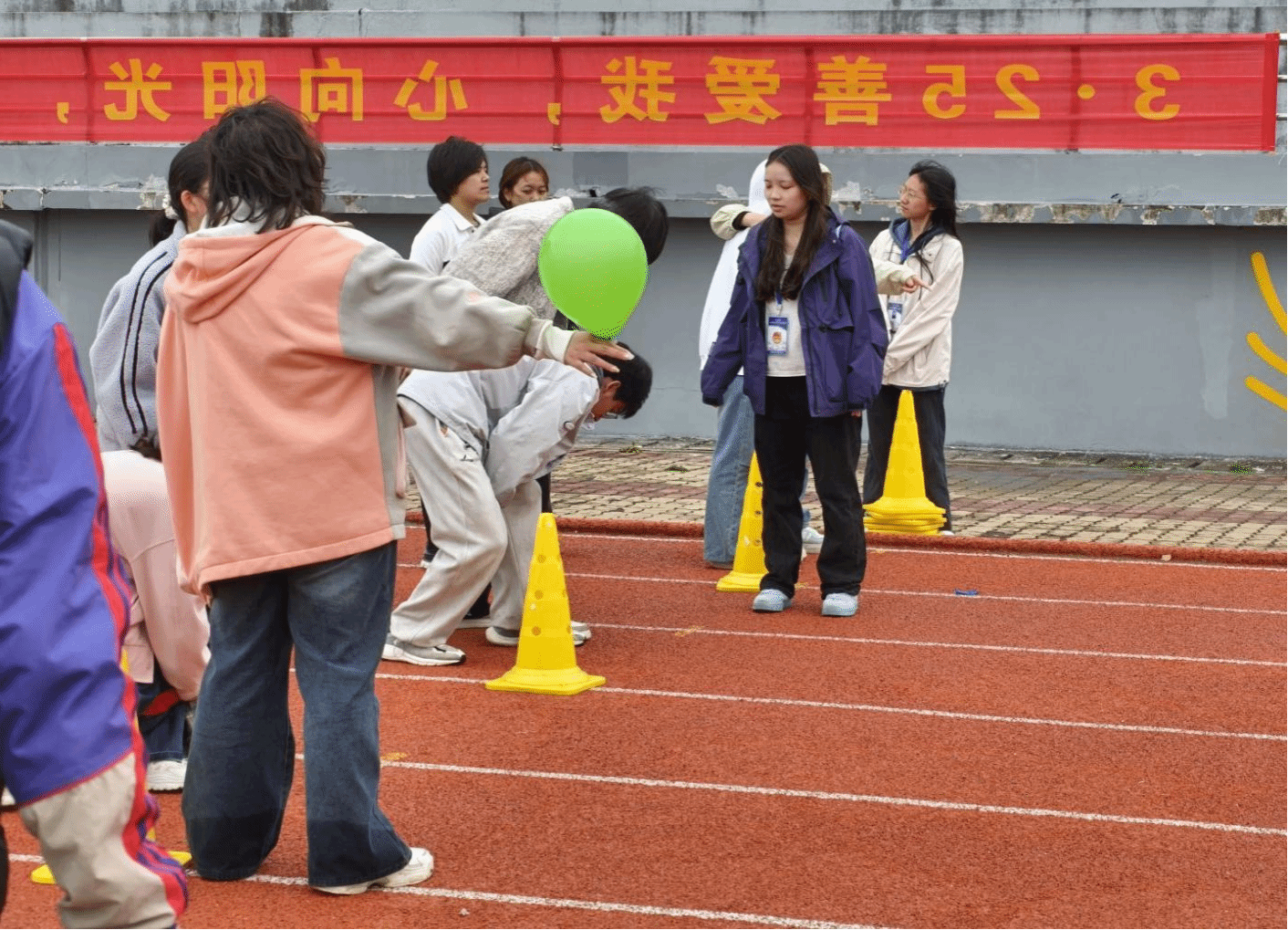 在304永利集团活动区域,学院代表队踊跃参与奋勇争先团体接力赛、凝心聚力集体跳大绳、同心协力团体拔河赛三项竞技项目。赛场上,队员们默契配合完成两人三足、背靠背夹气球等接力任务,在摇绳与跳跃中展现协同节奏,在拔河比拼中凝聚集体力量,以昂扬姿态展现学院风采。同时,师生们纷纷驻足“向阳告白”巨型心愿墙,写下自我接纳宣言与美好祝福,在“逐光而行”打卡区借助创意手持牌合影留念。
