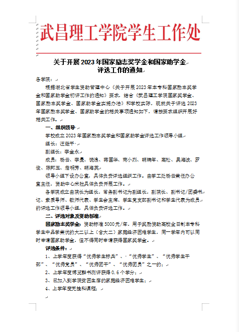 关于开展2023年国家励志奖学金和国家助学金评选工作的通知