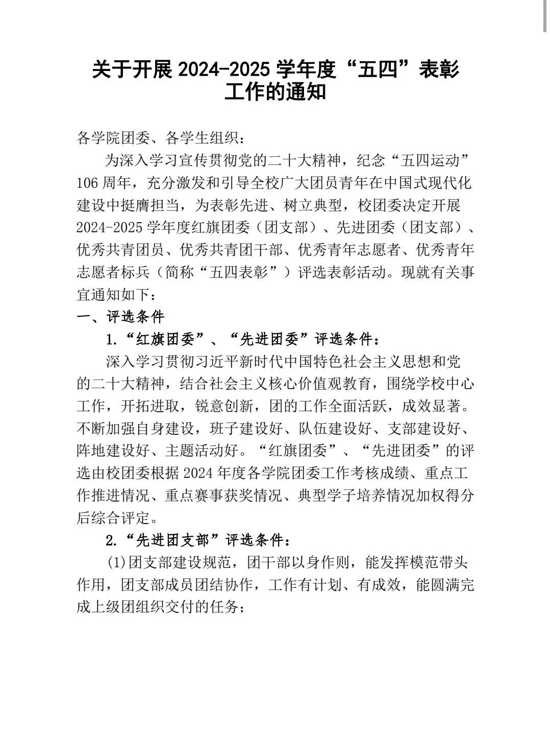 关于开展2024—2025学年度“五四”表彰工作的通知