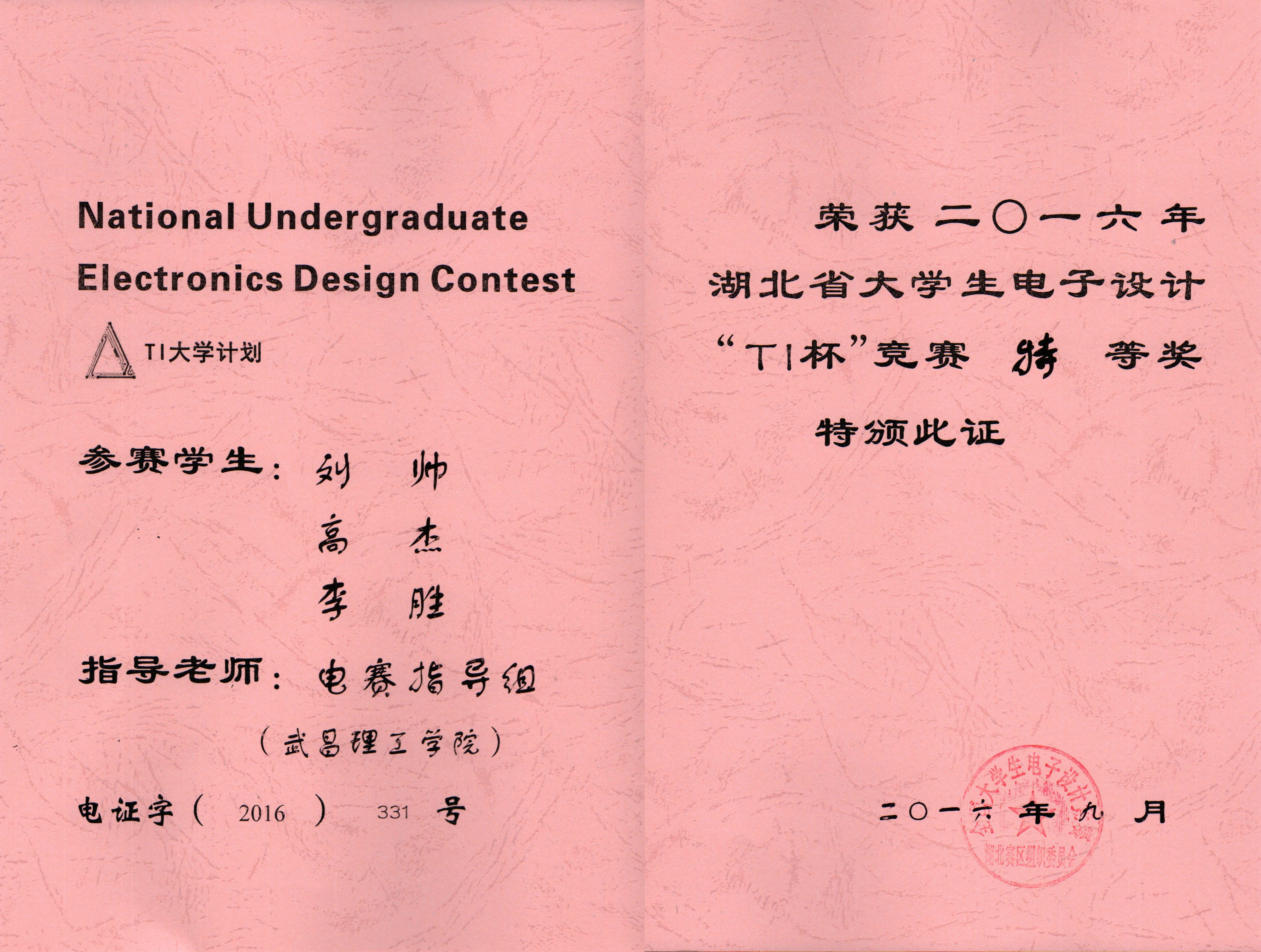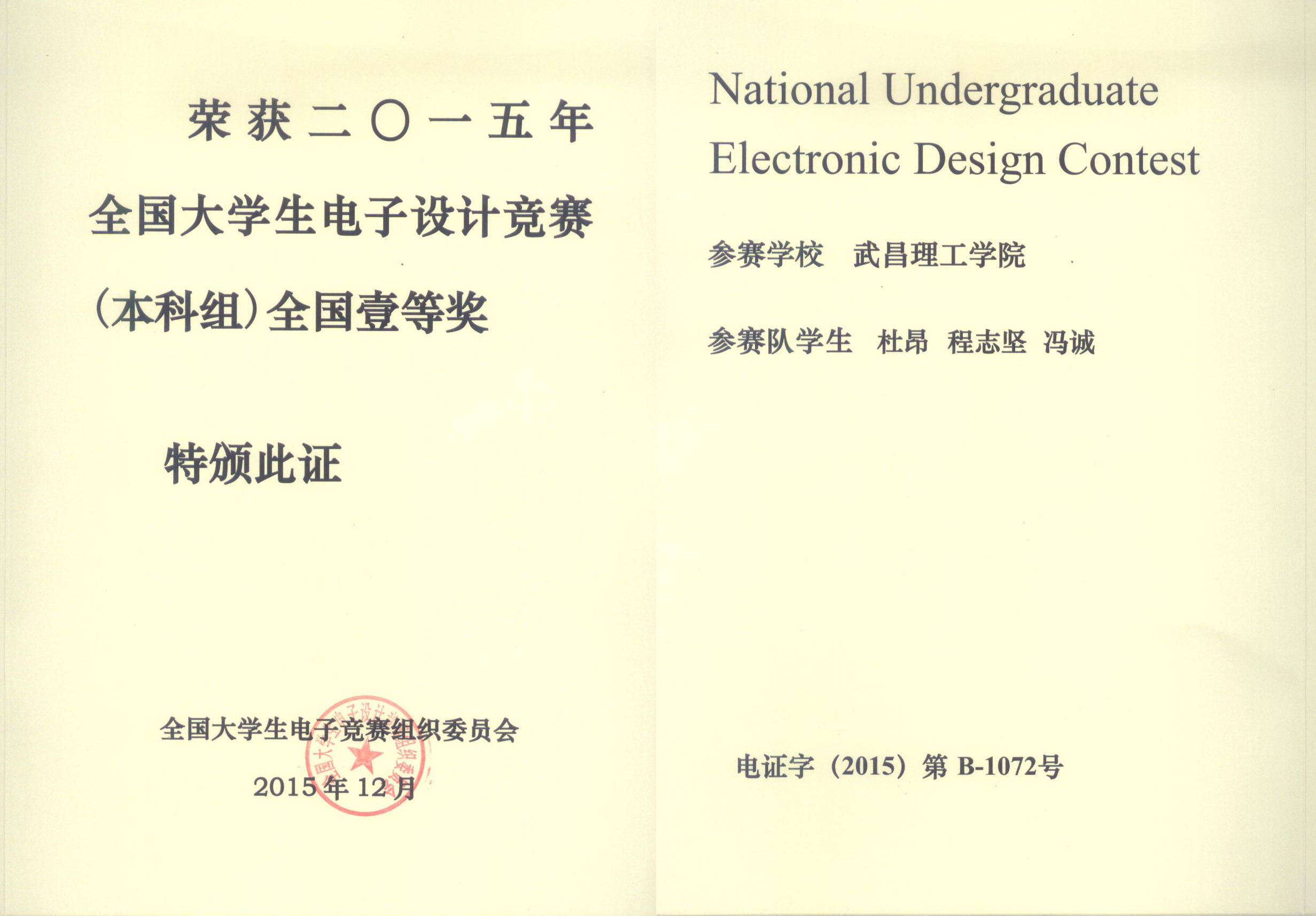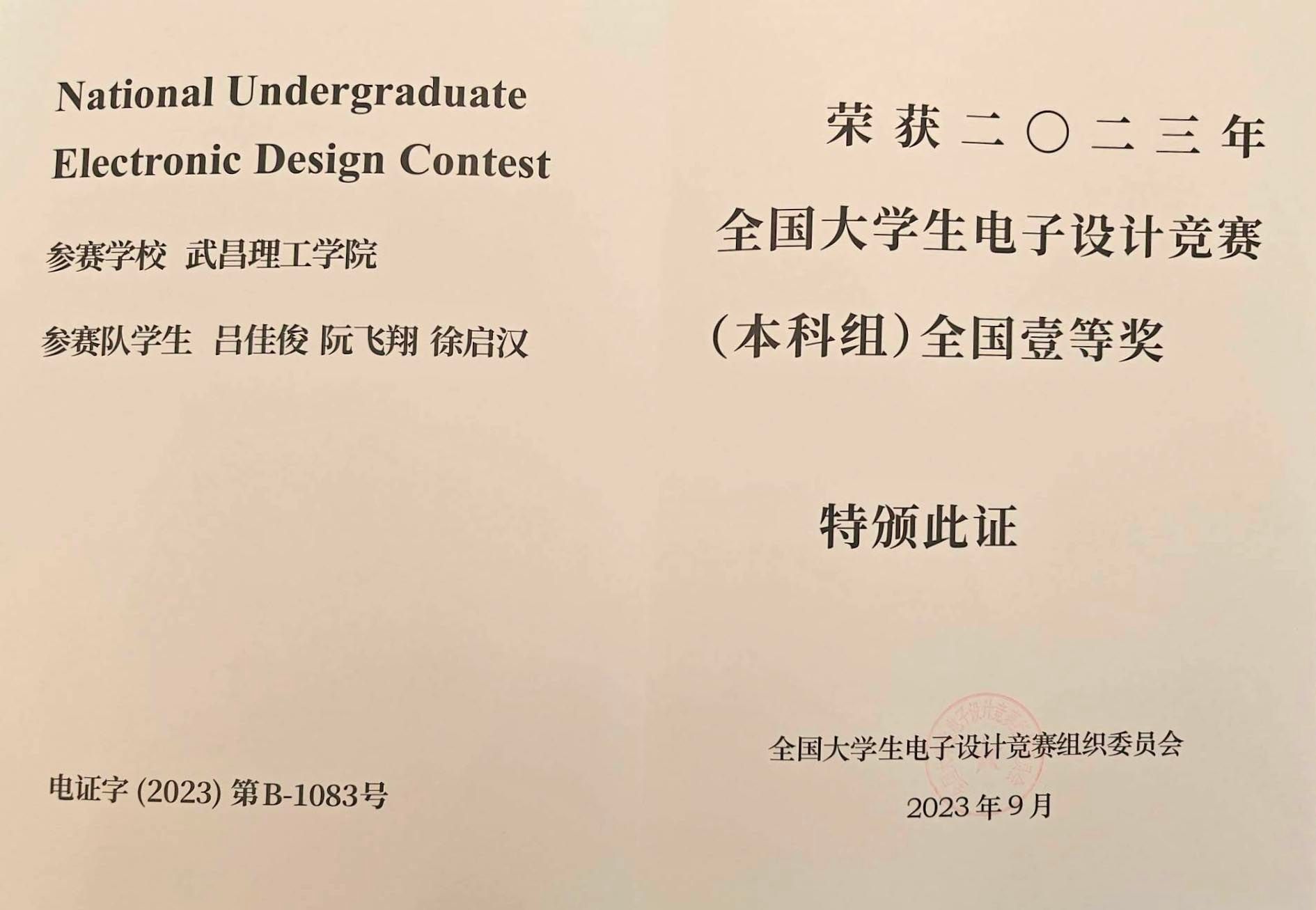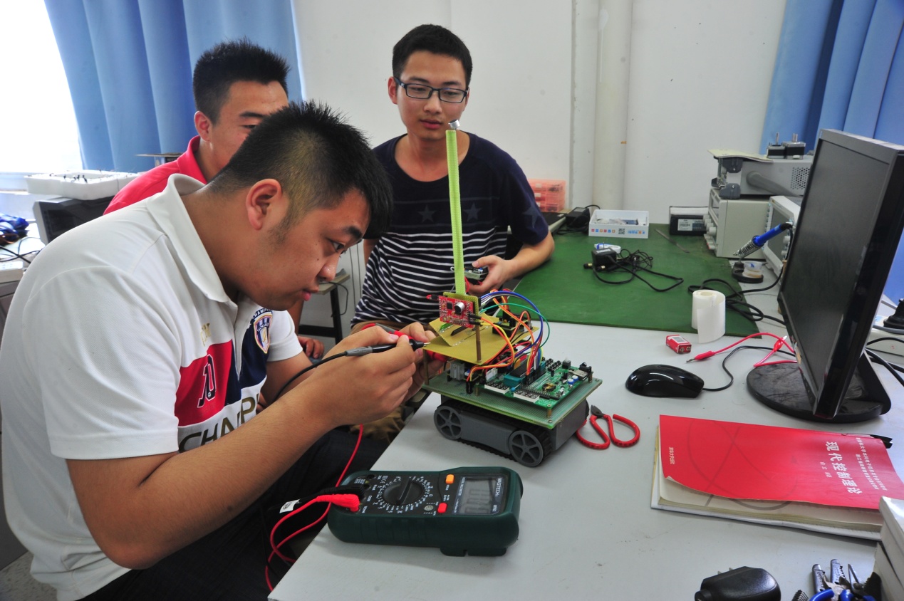 电子设计创新实训室配置主要的仪器设备有:数字信号发生器、数字示波器、直流稳压电源等。 实验室现有专职教师4名,其中副教授2名,高级实验师1名,讲师1名。 本实训室的主要任务是开辟第二课堂,培养学生的科研能力和创新精神,并通过技术攻关,培养学生团结协作、不怕困难、勇于拼搏精神。电子设计创新实验室培训的主要内容是与电子类相关专业的理论设计和实际制作。培训从基本的单元电路一直到高指标的智能系统,完成从设计、制作到调试的全部过程。培训时间1—2年,选拔其中较优秀的学生代表学校参加全国(单数年)或全省(双数年)大学生电子设计竞赛。 学生获奖情况: 2009年我校参赛7个队,获省二等奖5个。 2010年我校参赛6个队,获省一等奖2个、二等奖2个、三等奖1个。 2011年我校参赛12个队,获省一等奖1个、二等奖5个、三等奖1个。 2012年我校参赛10个队,获省三等奖6个。 2013年我校参赛12个队,获省一等奖2个、二等奖1个、三等奖6个。 2014年我校参赛12个队,获省一等奖2个、二等奖2个、三等奖5个。 2015年我校参赛12个队,获得国家一等奖1个,省级一等奖1个,省级二等奖4个,省级三等奖6个,获奖率100%。 2016年我校参赛12个队,获得湖北省特等奖1项,湖北省一等奖2项,湖北省二等奖4项,湖北省三等奖2项。 2017年获全国大学生电子设计竞赛省二等奖3项,省三等奖3项。 2018年获全国大学生电子设计竞赛省二等奖2项,省三等奖5项。 2019年获全国大学生电子设计竞赛省一等奖1项,省二等奖1项,省三等奖6项。 2020年获全国大学生电子设计竞赛省一等奖2项,省二等奖6项,省三等奖1项。 2021年获全国大学生电子设计竞赛国家二等奖1项,省一等奖4项,省二等奖4项,省三等奖1项。 2022年获全国大学生电子设计竞赛获省特等奖4项,省一等奖4项,省二等奖1项,省三等奖2项。 2023年获全国大学生电子设计竞赛国家一等奖1项,国二等奖1项,省一等奖3项,省二等奖3项,省三等奖1项。 2024年获全国大学生电子设计竞赛省二等奖4项,省三等奖5项。 |